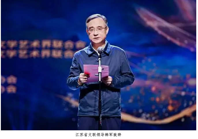 江苏省文联领导韩军发表了热情洋溢的讲话,他充分肯定了长三角舞蹈联盟成立以来对区域舞蹈文化交流发挥的积极作用,活动的规模和影响力持续扩大,希望本届展演能够强化交流、增进了解、加深感情,舞出艺术新高度、舞出江海新气韵、舞出时代新潮流,用舞蹈艺术讲述长三角一体化发展的生动故事,推动长三角地区舞蹈艺术水平的整体跃升。