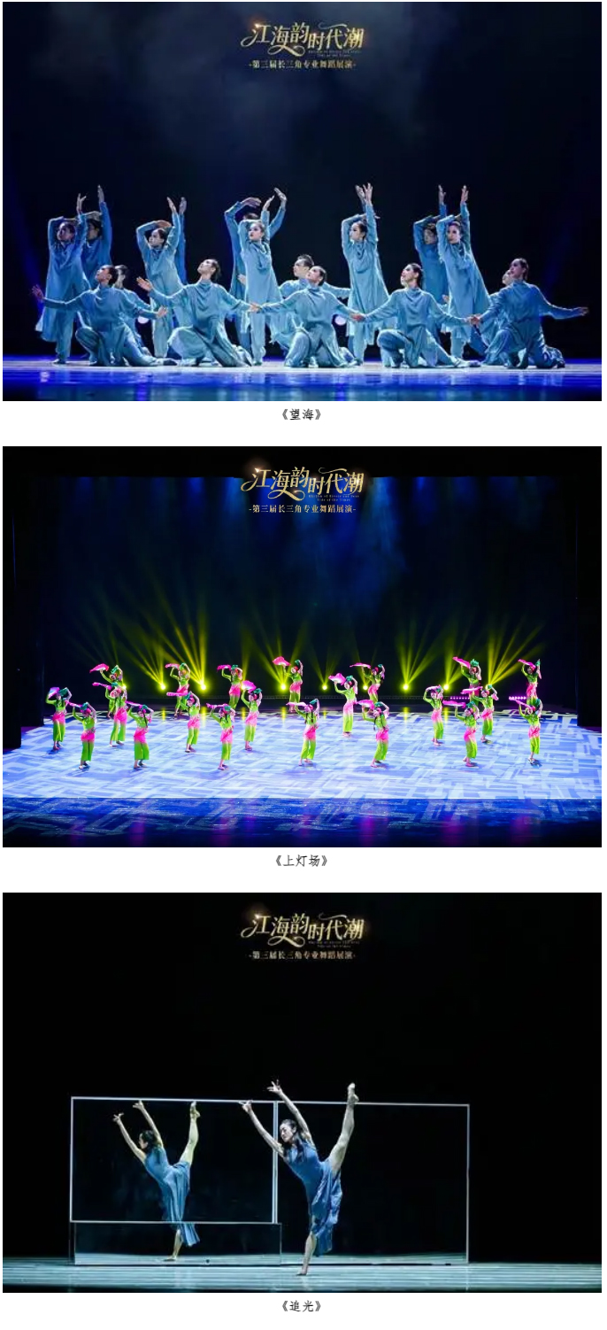 莅临现场的长三角三省一市文联领导和舞协领导共同登台,为“第三届长三角专业舞蹈展演”启幕。伴随着屏幕上倒计时,象征着长三角地区一体化发展,传递中国精神、反映时代之变,展现新一代长三角文艺工作者使命与担当的本届专业舞蹈展演正式拉开了帷幕。39支队伍分两场依次登台,呈现了一场极具艺术感染力和观赏性的专业舞蹈盛宴,赢得了台下观众阵阵掌声。