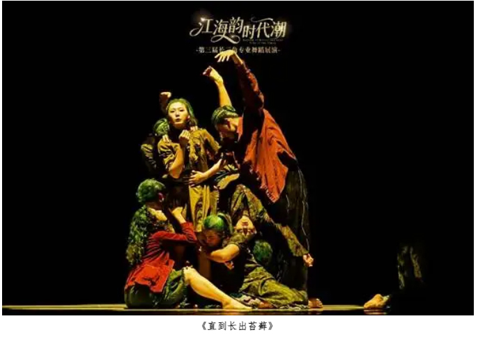 上海戏剧学院舞蹈学院表演了以苔藓为载体创作的舞蹈《直到长出苔藓》,通过这种生长于阴暗潮湿之处的植物,用舞蹈动作表现其善于入侵和攀附。将这种植物蓬勃生长的形象尽情展现。